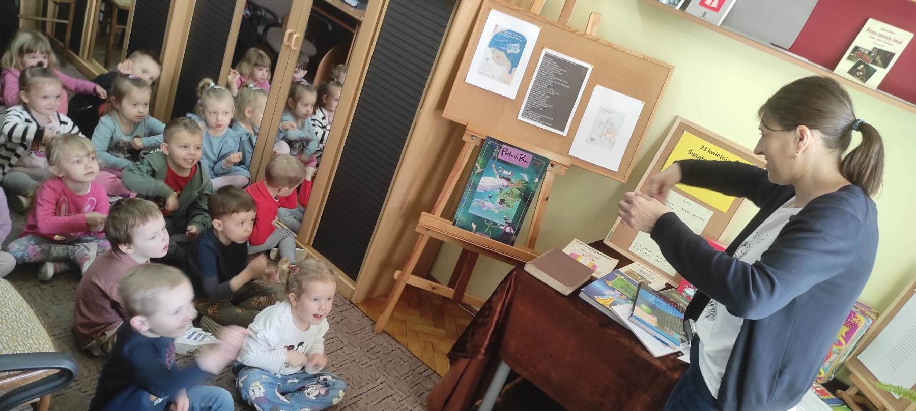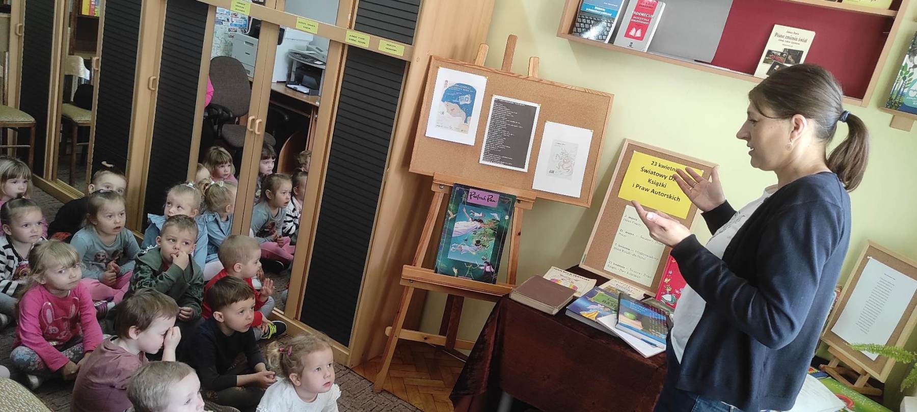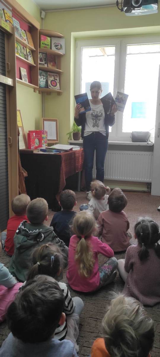 Bibliotekę w tym czasie odwiedzają dzieci, by już od najmłodszych lat poznawać wartości płynące z książek, ich przeznaczenie, a także uczyć się szacunku do słowa pisanego i ich twórców. Z okazji Światowego Dnia Książki i Praw Autorskich odwiedziła nas grupa „Króliczki” z Przedszkola Nr 1 im. Krzysztofa Bezena w Wieruszowie. Choć najmłodsi, to już stali bywalcy poznali kolejne książkowe święto, usłyszeli, że nie można sobie przypisywać słów i własności innego człowieka, podzielili się wiedzą o usłyszanej miesiąc wcześniej bajce „O wilku i siedmiu koźlątkach”, odpowiadali na pytania i brali czynny udział w zabawach ruchowych. Warto mówić o książkach i wiedzą się dzielić z najmłodszymi, bo to procentuje w ich dalszym życiu. Prawo autorskie Ja jestem twórcą, ja decyduję, co tam słowami sobie wymaluję, prawo autorskie mnie tak ochrania, że wszystkie moje są te pisania, mogę Ci chętnie pożyczyć wierszyk, lecz Ty nie będziesz do niego pierwszy, przeczytasz głośno tytuł i treść oraz autora – to jego część, pamiętaj zawsze, gdy coś cytujesz, mów głośno o tym, z kogo kopiujesz.