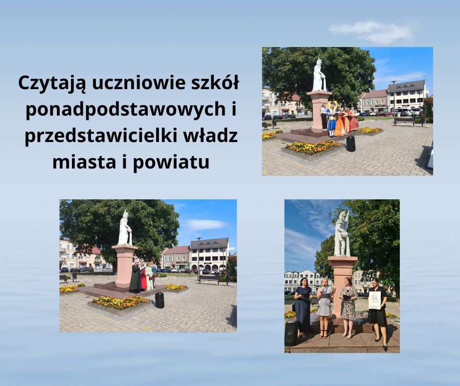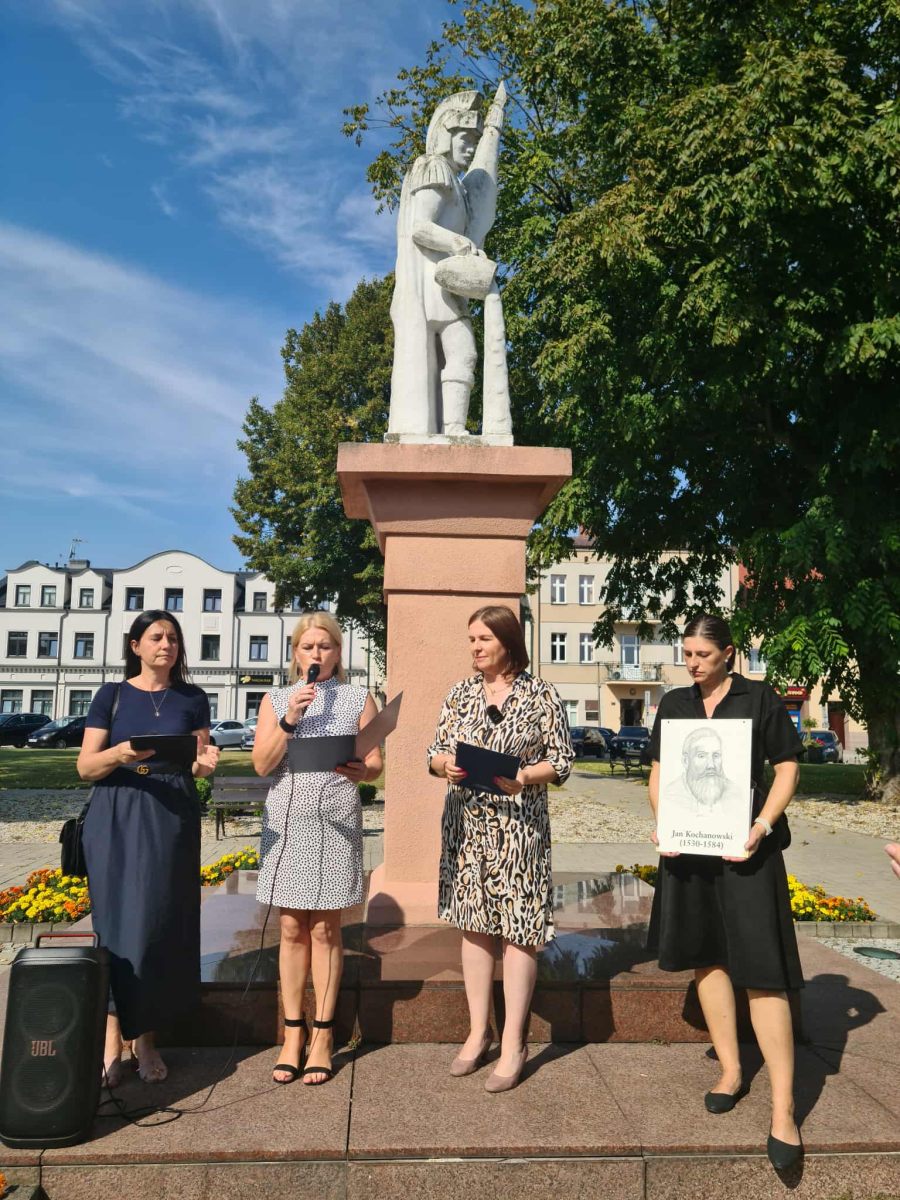 W piątek 5 września przenieśliśmy się do utworów epoki renesansu, znakomitego „ojca poezji polskiej” Jana Kochanowskiego (1530-1584). O godzinie 10.30 powitani uroczyście przez Panią Dyrektor Zespołu Szkół Ponadpodstawowych im. Stanisława Staszica w Wieruszowie – Agnieszkę Mazurowską ruszyliśmy barwnym korowodem do rynku naszego miasta. To właśnie tutaj, jak i w poprzednich latach odbyło się Narodowe Czytanie utworów Jana Kochanowskiego – 14 odsłona akcji ogólnopolskiej, której patronuje Para Prezydencka.